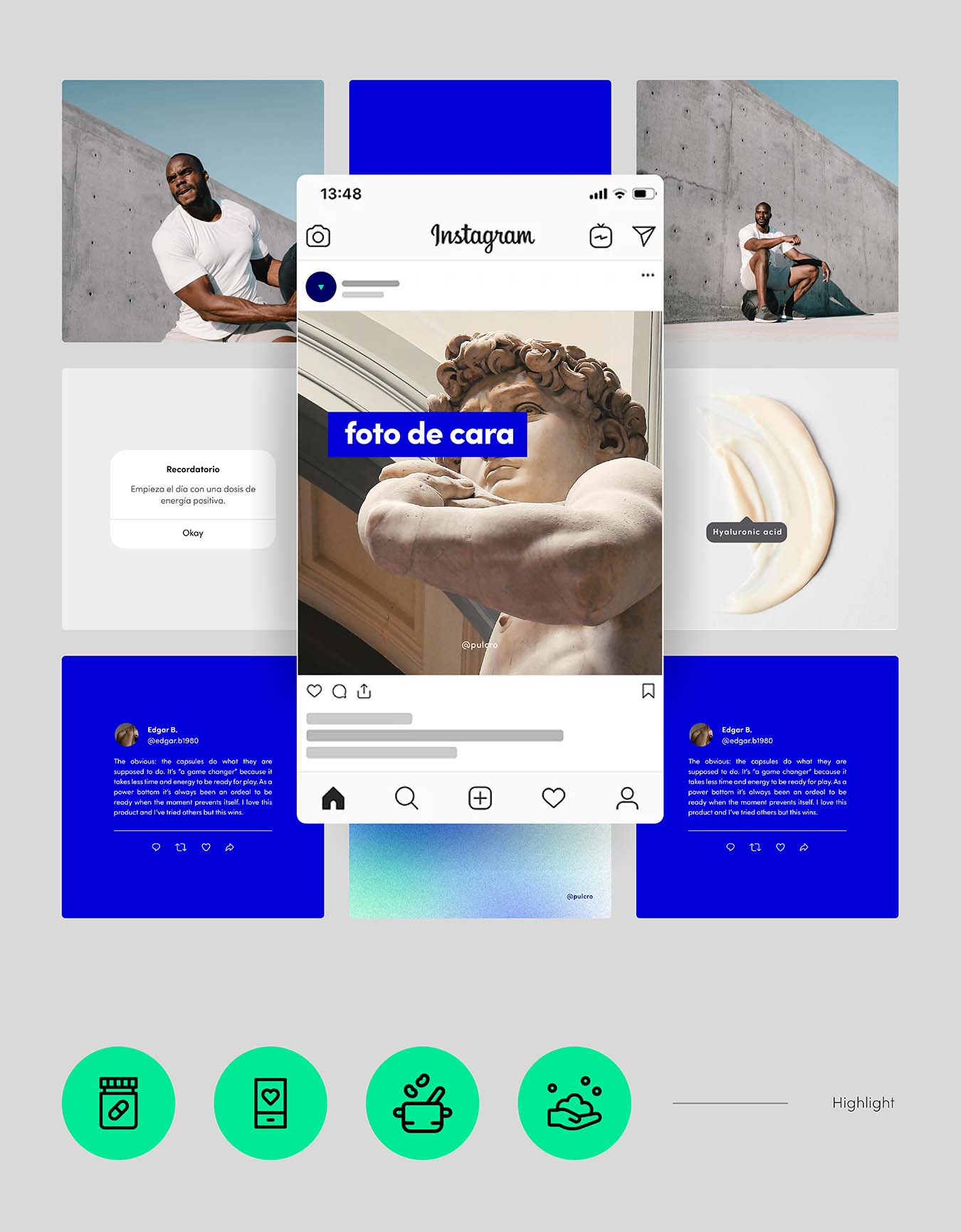 - Grilla de contenido gráfico, una vista previa visual que muestra cómo se verá tu feed de Instagram, garantizando una estética coherente y atractiva.